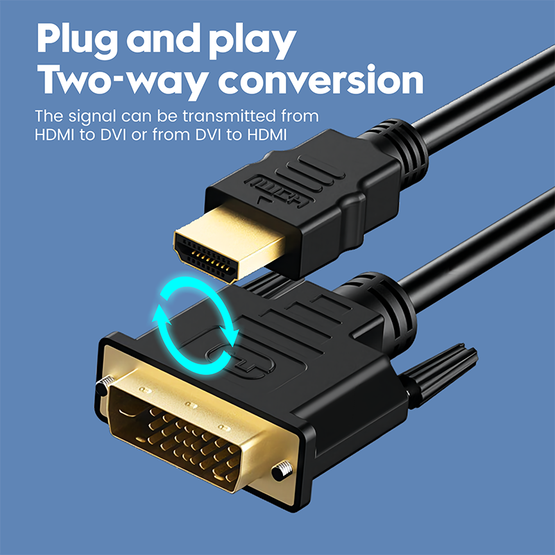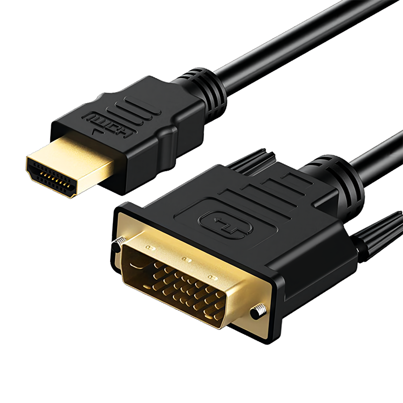 30AWG(19 1CCS)OD6.0BK,无编织,无铁氧体芯,HDMI至DVI公头至公头,金色连接器,黑色塑料模具)