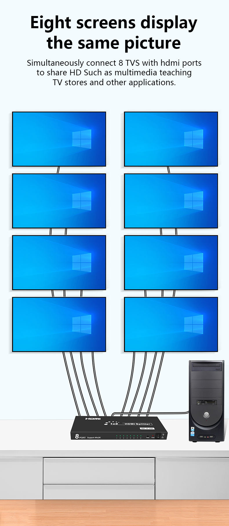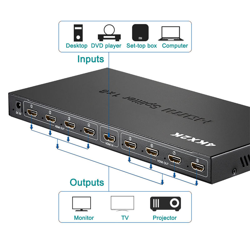 HDMI Splitter 1x8 -- Model: SD - HD108 - 1 HDMI input, 8 HDMI displays output simultaneously - Supports 3D - defines input/output protocols for mainstream 3D video formats - Supports video and audio signals - Supported audio: LPCM, Dolby AC3, DTS 7.1, DSD/Dolby TrueHD / DTS - HD Master Audio - Supports high video resolution up to 1920 x 1200 (480i/480p/576i/576p/720p/1080i/1080p) - Easy to connect |